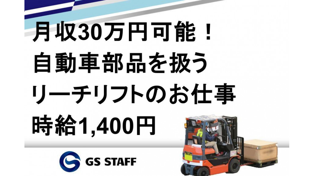 | 職種名 | フォークリフトを使った入出荷作業 土日休み 時給1,400円 週払いOK! |