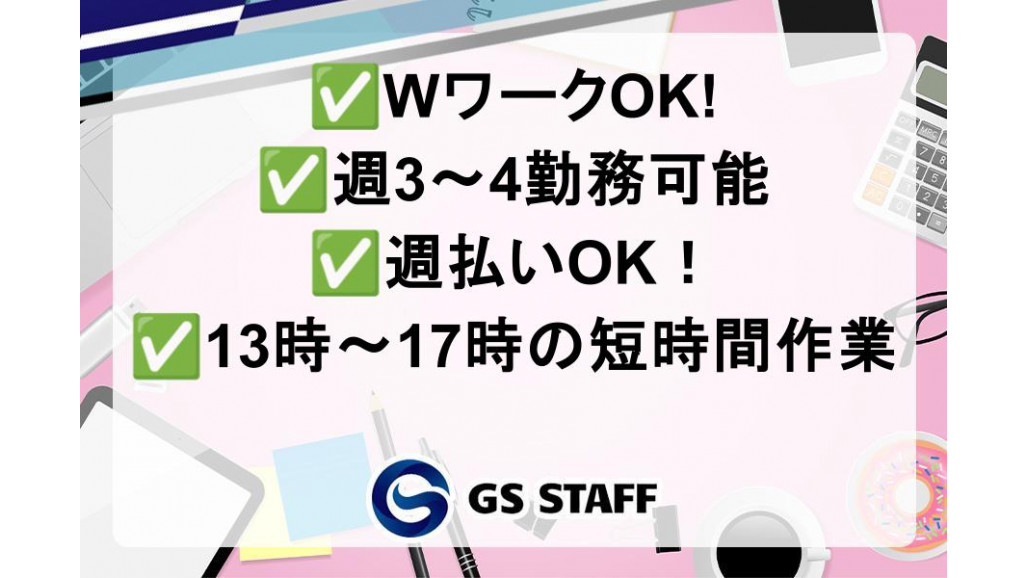 | 職種名 | 自動車部品に使うトレーの仕分け作業 ✅Wワークの方におすすめ!✅4時間の短時間パート!✅無理なく働ける! |