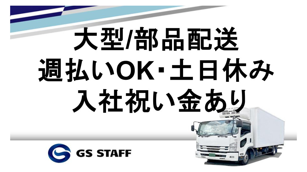 | 職種名 | 大型トラックで自動車部品の配送ドライバー 前払い有り 土日休み 長期休暇有り |