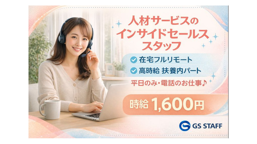 | 職種名 | 人材サービスのインサイドセールススタッフ 高時給 扶養内パート 勤務時間自由 |