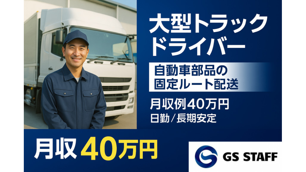| 職種名 | 部品配送の大型トラックドライバー 高月収 即週払い可 コース固定 |