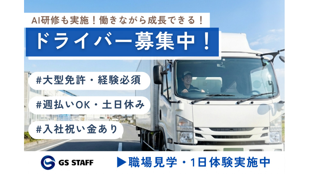 大型ドライバーおよびフォークリフト経験者の方はご応募ください! ■■■おすすめポイント■■■ ✅残業もしっかり可能! ✅土日休み 長期休暇 ✅固定ルート配送で安心走行 ■■■お仕事内容■■■ 大型トラックで自動車部品の配送をしていただくお仕事です。 ⏩️基本的には工場間のピストン輸送 ⏩️カウンターリフトを使い、樹脂パレがメイン ⏩️固定コースの往復 【職場見学・1日体験も実施】 入社する前に実際に働く現場をぜひ見学ください。実際に勤務する場所を見て頂くことによって、安心してお仕事を開始できると思います。 ■■■安心のサポート体制■■■ ✅入社祝い金「3万円プレゼント」 転職時は何かとお金がかかるもの。 そこで、60日以上勤務された方には「入社祝い金」として3万円プレゼント! ✅即!週払いOK! 入社して1週間の勤務から申請OK!最短で翌日に振り込まれます。 ✅キャリアアップも安心! 定年まで安心できるキャリアづくりを一緒にしていきましょう。 GS STAFFは「短期派遣で人を回す会社」ではありません。スタッフを大切な仲間と考え、資格取得支援・スキルアップ研修・長期的な働き方を本気で応援します。 「ずっとこの業界で頑張りたい」その気持ちを、私たちが守り抜きます。 ~~~~~~~~~~~~~~ GS STAFFはココが違う! ~~~~~~~~~~~~~~ ①現場経験者だからこそ、気持ちが分かる! 社長を含め全員が現場の経験者。働く現場の楽しさや厳しさを知っているからこそ、悩みごとや不安にはしっかりと寄り添うことをお約束します! ②経験豊富なスタッフの徹底サポート 派遣業界を長く経験してきた営業担当や内勤スタッフが、未経験者も経験者も、お客様も含めてしっかり支えます。 「困った時に誰に相談すればいいんだろう?」──そんな不安は一切不要。私たちは必ず一緒に解決の道を探し、安心して働けるように伴走します。 「久しぶりの面接で緊張する」「職場に馴染めるか不安」など、どんなお悩みでもお気軽にご相談くださいね。 ③「全部大事にする」姿勢 家族も大事、仕事も大事、仲間も大事、お客様も大事。どれか一つを犠牲にするのではなく、すべてを大切にすることが私たちの考え方です。そのバランスの上にこそ、最高の働き方と人生があると信じています。 ④有休取得率90%超え! 元々お休みの日を有休に切り替えることも可能です!お子さんのイベントや旅行など、プライベートも大切にしてくださいね。 ⑤選んでいただいた感謝を忘れない 星の数ほど会社がある中で、GS STAFFを選んでくれた──その事実に心から感謝しています。 だからこそ「この会社にしてよかった」と思っていただけるように、仕事のやりがいも、プライベートの充実も、どちらも大切にしています。 またGS STAFFはGSホールディングスに所属しています。多岐にわたる事業展開により堅実に成長しており、安心して働くことができます✨ 【求人ID-KK001】 |