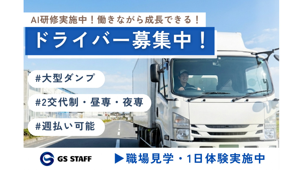 大型ドライバーの経験者の方はご応募ください! ■■■おすすめポイント■■■ ✅構内での車両の運転業務! ✅大手メーカー構内での安定した勤務環境! ✅積み込み作業がないので身体の負担が少なめ! 【具体的な仕事内容】 鉄鋼メーカーの構内にて、鉄スクラップを指定された部署まで運搬するお仕事です。 「ヤード」と呼ばれる材料置場からマグネット付きユンボでダンプに積み込み、所定の場所へ運搬します。 【職場見学・1日体験OK】 働く環境を事前に確認できるので、ミスマッチなく始められます。不安がある方も、まずは見学だけでも大丈夫です。 【安定勤務を支える、安心の職場環境】 多事業展開で成長を続けるGSホールディングスのグループ企業です。安定した基盤のもと、安心して働けます✨ ■■■生活で助かる制度あり■■■ ✅定着支援制度あり(規定) ✅週払いOK (入社1週間後から最短翌日に振り込まれます) ■■■キャリアアップをサポート■■■ 今の経験を活かしながら、さらにスキルアップできる環境です。 ✅資格取得支援制度あり ・大型免許 ・中型免許 ・フォークリフト免許 「もっと稼ぎたい」「もっとできることを増やしたい」という思いに応えるため、資格の取得をサポートする体制を完備!(在籍1年以上の方が対象) ✅AI研修あり(スマホでOK) 誰でも使えるAIの基本操作を学べます。 作業手順の最適化や、日報の文章作成など、仕事の効率化にも役立つ内容です。 困った時に「すぐ調べられる力」が身につくので、未経験の方でも安心してスタートできます。 ―――――――――――――― 現場経験者の担当者がしっかりサポートするので、困った時もすぐ相談できます。 有休取得率90%以上で、プライベートも大切にできる環境です。 選んでくれた方に「この会社で良かった」と思ってもらえるよう、働きやすさを追求しています。 ―――――――――――――― 【求人ID-KK001】 |