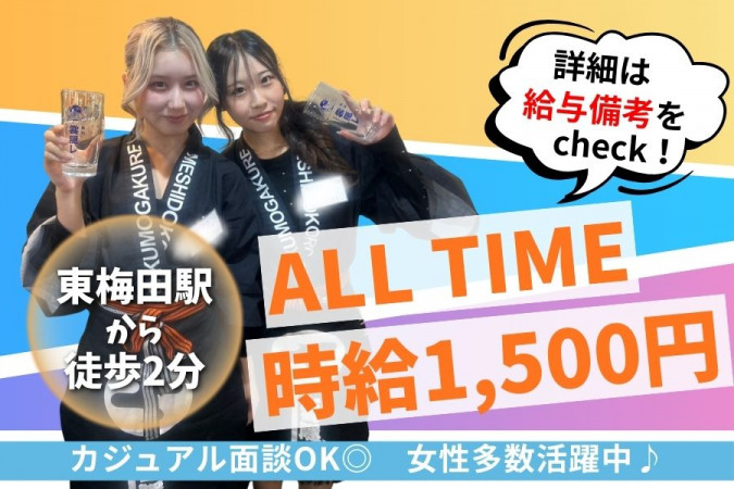 | 職種名 | オープニングスタッフ ホールスタッフ 東梅田駅から徒歩2分 週1日・1日2時間~ シフト制 まかないあり ネイル・ピアス可 カジュアル面談可 |