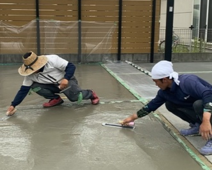 | 力を合わせて一つの庭をつくり上げる、大切な瞬間です。丁寧な仕上げがお客様の暮らしを支える基盤を作ります! |
