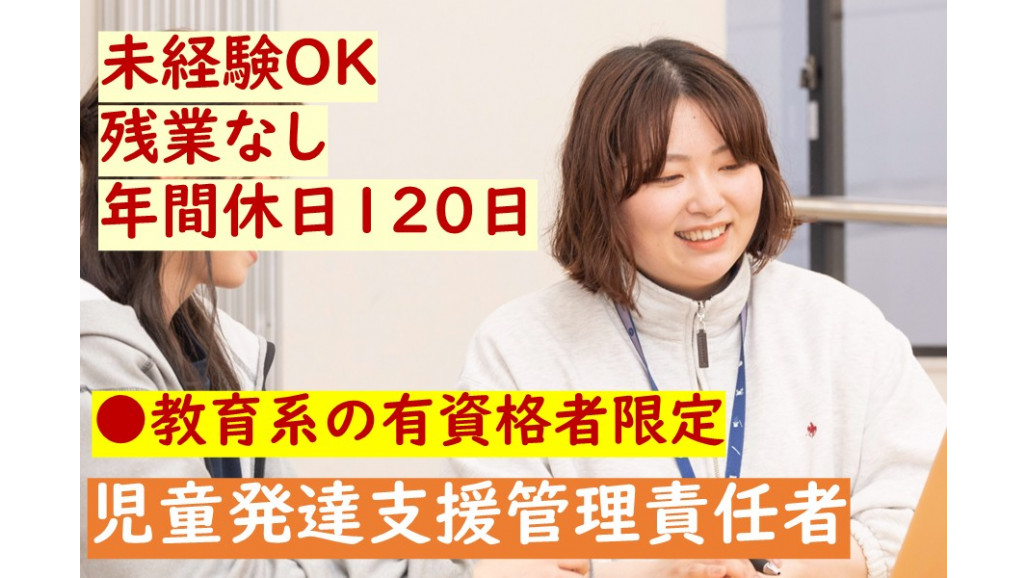 | 職種名 | 放デイの児童発達支援管理責任者 完全週休2日制 ブランク可 |