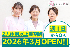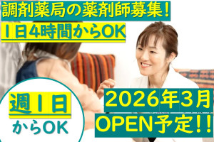 2026年2月OPEN予定!調剤薬局のパート薬剤師募集!週1日からOK!1日4時間からOK…
