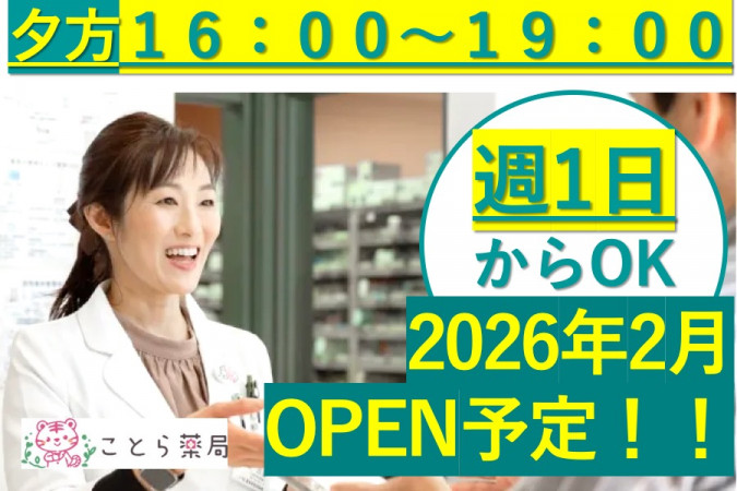 | 職種名 | 夕方のみの薬剤師 週1日から可 オープニングスタッフ |