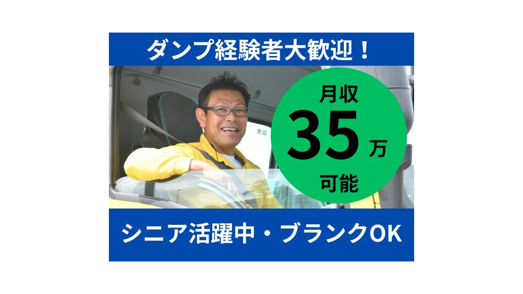 | 職種名 | 土を運搬する大型ダンプドライバー 経験者 車通勤可 資格取得支援あり チームワーク良好 |
