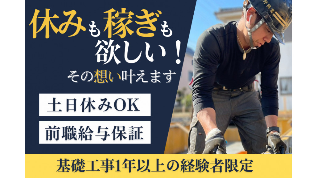 【限定】 基礎工事経験1年以上の方 普通自動車免許(AT限定可) ★学歴不問 |