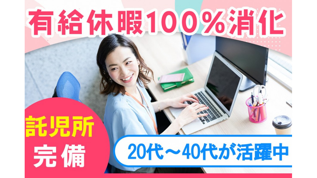 ・交通費規定支給 ・自動車通勤可 ・無料駐車場有り ・託児所あり ⭕有給休暇100%消化 取得した有給は1年以内に全て消化することとなっています。 ⭕正職員登用あり(正社員登用あり) |