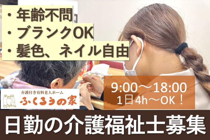 | 職種名 | 日勤の介護福祉士 週1日から可 1日4時間から可 |