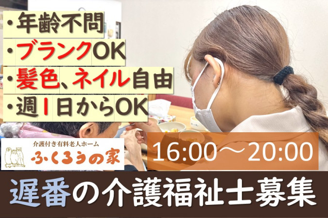 | 職種名 | 遅番の介護福祉士 週1日から可 |