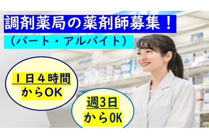 | 職種名 | 調剤薬局の薬剤師 週3日から可 |