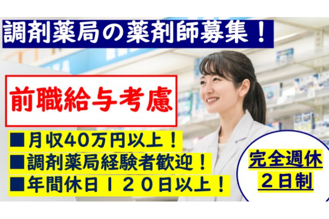 | 職種名 | 内科の門前薬局の薬剤師 完全週休2日制 前職給考慮 |