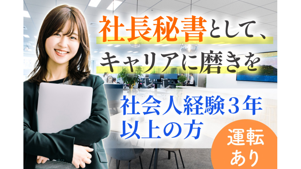 ■必須条件 ・4年制大学卒業 ・社会人経験3年以上の方 ・SUVの運転に抵抗のない方 ・基本的なPC操作ができる方 ・多少の勤務時間調整OKの方 ・ビジネスマナーが身についている方 ■優遇条件 ・AIツールが使いこなせる方 ・会食店舗、手土産などに詳しい方 ・資料作成が得意な方(PPT/エクセル) ・秘書、社長室、経営企画室、総務人事等での勤務経験のある方 |