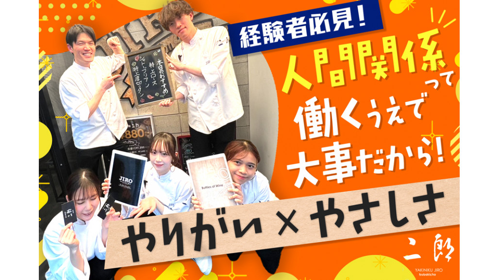 “人間関係がいい”って、やっぱり働く上で大事だから。 仲間想いなチームで“やりがい”と“優しさ”、どっちも手に入れませんか? 思いやりのある方のご応募を、心よりお待ちしております。 \焼肉&手打ち冷麺 二郎で店舗マネージャー候補を募集✨/ 【主な業務】 ✅接客など営業中のオペレーション ✅シフトの作成 ✅人材教育、マネジメント ✅採用管理 ✅予算の作成 ✅売上への対策立案や実行 など 店舗スタッフの働きやすさを考えたお店づくりや、店舗ごとのアイデアを活かした売上アップなど、あなたの挑戦をしっかりサポートします。 思いやりのある仲間と、最高のお店づくりを一緒に目指しましょう。 ====================== 飲食店運営ノウハウが身に付く! ====================== ✨焼肉屋さんなど飲食店の運営に興味のある方 ✨店舗運営経験が豊富な会社で、新しいことを学びたいと考えている方 そんな方にぴったりの環境です。 飲食店の仕事はホールや調理だけではありません。 売上管理や人材マネジメント、広報活動、イベント企画・運営など、幅広い業務に携われます。 「〇年後の独立を目指して経験を積みたい!」 「自分らしさを取り戻して、新たなスタートを切りたい!」 店舗運営のすべてがここで身につきます!一緒に、飲食店の新しい未来を築いていきましょう! ================== みんなで「より良く」する思い ================== 業務はあまりマニュアル化しすぎず、社員同士が知恵を出し合って柔軟に改善を重ねています。 「もっと働きやすく」を合言葉に、日々少しずつ改善を重ねています。 意見を交わし合いながら、より良いお店を一緒に作っていける、風通しの良い職場です。 前向きな意見を尊重し、仲間の成長を支え合えるチームで、あなたらしいマネジメントに挑戦してください。 ========================= 焼肉&手打ち冷麺 二郎 錦店について ========================= 店内はカウンターを入れて13卓48席。 価格帯は客単価6,000円〜7,000円くらいで、カジュアルに美味しいものを楽しめるお店です。 これまでに様々な業態の店舗を運営してきたノウハウを活かし、 現場スタッフがスキルを最大限に発揮できるような環境を構築しています。 / あなたの「思いやり」や「挑戦する気持ち」を活かせる場所でお待ちしています! \ 【求人ID-MNG】 |