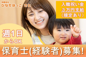勤務経験3年以上の保育士 週1日から可 年齢…
