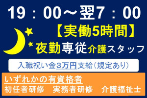 夜勤スタッフ(介護職) 週1日から可 実働5…