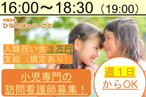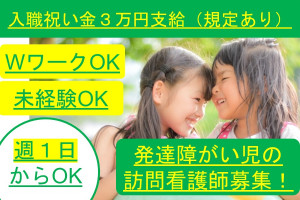 | 職種名 | 看護師 不登校や発達障がい児の精神発達専門 週1日から可 シフト制 |
