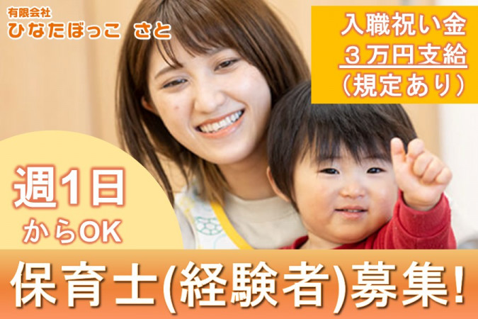 | 職種名 | 勤務経験3年以上の保育士 週1日から可 年齢不問 |