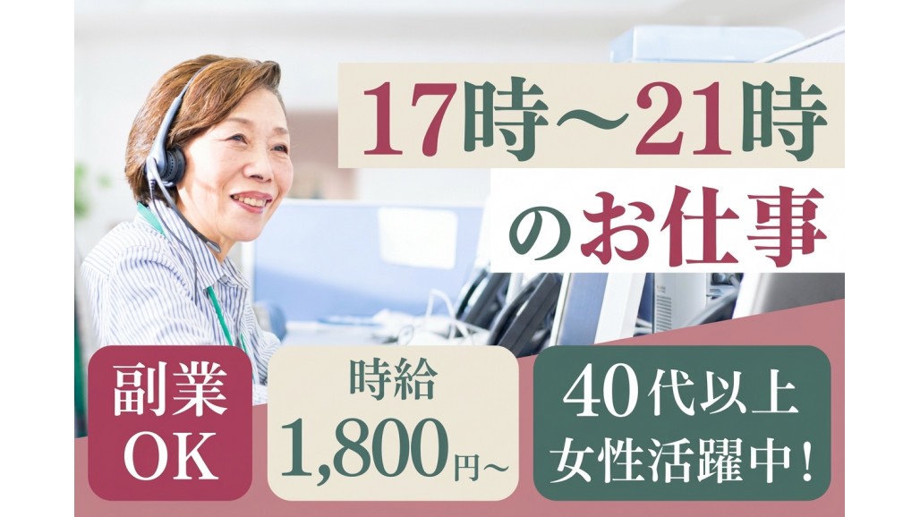 | 職種名 | カスタマーサービス担当・保険アドバイス 高時給 夜間の短時間ワーク |
