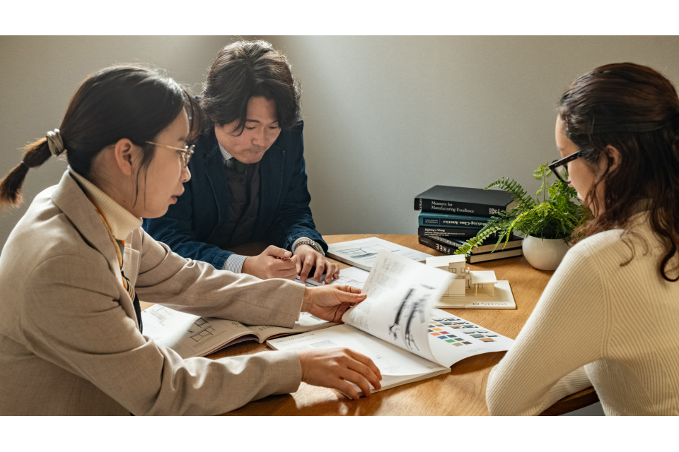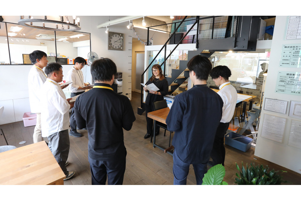 入社後は営業研修や住宅構造の基礎研修を実施。さらに月1回、1泊2日の外部研修では、他社との情報交換も可能です。多角的な視点で知識を深めながら、半年ほどでの独り立ちを目指します。
