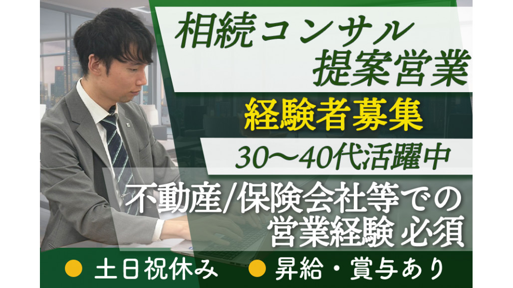 | 職種名 | 相続コンサルの提案営業・若手活躍・賞与あり |