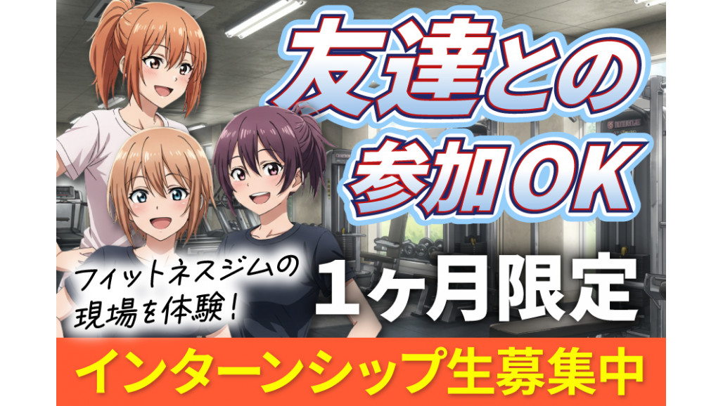 | 職種名 | ジムスタッフ お客様サポートなどのインターンシップ |
