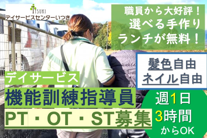 1日体験を実施しています!もちろん給料もお支払いします! どんな施設なのか、どんな働き方か、1日体験してみませんか?(半日体験も可能です) ✅同法人内の複数施設で勤務をしたい方も大歓迎! 一緒に地域のリハビリ環境をより良くしていきましょう! 【アピールポイント】 ・年齢不問 ・未経験OK ・ブランクOK ・週1日からOK ・なんと昼食無料 ・髪型、髪色自由 ・副業、WワークOK ・育休明けの職員多数在籍 ・体験入社制度あり(給与支給) ・キャリアアップ実績多数あり ・ネイルやアクセサリーOK(業務に支障のない範囲) ■具体的な仕事内容 ・機能訓練計画書の作成 ・機能訓練の実施 ・日々の訓練実施の記録 ・送迎/受け入れ ・レクリエーションの企画・運営 など ※資格はあるけれど、実務経験が少ない方やブランクがある方もご安心ください! ■当社について 『ご利用者様の最高の笑顔を導く為に!』 一般的な介護業務をしながら、既存の介護モデルに縛られることなく、自身が実現したいサービスやレクリエーションの実施が可能な介護施設です。 ■ご利用者様からのご意見を反映したイベント事例 ・伊勢神宮参り ・周年祭時のまぐろの解体ショー ・社長秘伝のタレを使用した鰻の蒲焼祭 など 会社を立ち上げ今年で10年目となりますが、ご利用者様の笑顔を導く為に様々なイベントやレクリエーションを実施して参りました。 ご利用者様と職員によるコラボレーション企画や、職員の発案により、お誕生日にサプライズイベントとしてZoomを利用してのお誕生日会等も行っております。 もし自分が介護施設を経営するなら、あなたはどんな施設にしたいですか? 株式会社樹から三重県の介護業界を盛り上げ、更には日本全土に我々が企業理念として掲げる「五つの気」を通した「介護」が広がることを心より願っております。 ■こんな方大歓迎 ・人と接することが好きな方 ・笑顔溢れる職場で働きたい方 ・「介護」を通じてやりたいことがある方 ・仕事を通じて社会貢献をしたい方 ■各SNSで発信中! 社長の想いや施設での取り組み(イベント・機能訓練・食事など)について発信をしています! <YouTube>「ほっとけやんチャンネル」 <Instagram・TikTok>「デイサービスセンターいつき」 で検索してみてください! 【求人ID-IKK】 |