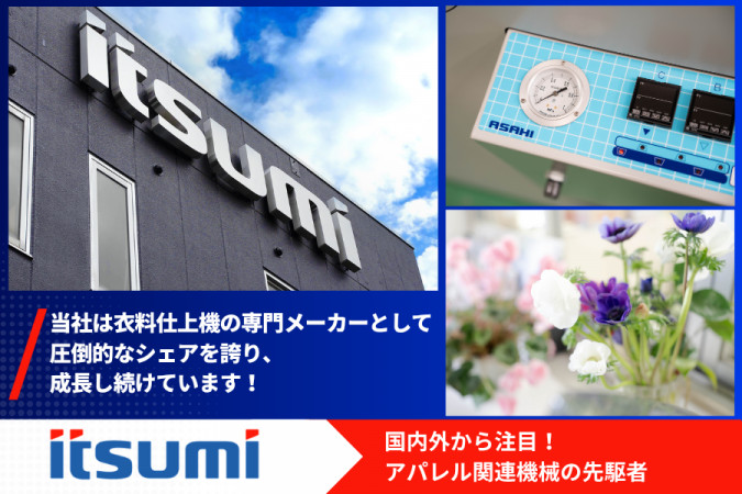 アパレル業界のトップブランドや大手メーカーのモノづくりを支える、 自社製品およびOEM製品の製造管理をサポートする事務業務をお任せします! 【具体的な仕事内容】 ● データ入力・事務管理 Excelを用いた集計や表作成、専用システムへの受発注入力。 ● サプライチェーンのサポート 資材の在庫管理・検品・梱包・発送業務。 ● 製品検査・品質チェック 出荷前の製品に不備がないかの最終確認。 ● 外部対応・用務 電話・メール対応、近隣金融機関への外出(社用車運転あり)、展示会時の運営サポート。 【教育体制】 20代・30代で事務未経験からスタートした先輩も活躍しています。 業務フローは一つひとつ丁寧にお伝えしますので、異業種からのキャリアチェンジも歓迎です。 ★求人の魅力ポイント★ ◎「やりがい」と「安定」の両立 誰もが知る有名アパレルメーカーの製品づくりに携われる誇りと、創業50年を超える安定した経営基盤があります。 腰を据えてキャリアを築きたい方に最適な環境です。 ◎ライフステージに寄り添う理解ある職場 現在、子育て中のスタッフも在籍しています。 「お子さんの行事」や「急な発熱」など、家庭の事情に理解があり、チームで業務をカバーし合う体制が整っています。 ◎適度に動けるアクティブな事務職 デスクワークに専念するだけでなく、検品や梱包、外出用務など、適度に体を動かす業務が含まれます。 「一日中座りっぱなしは苦手」という方にも、リフレッシュしながら取り組めると好評です。 ― 株式会社イツミについて ― 私たちはアパレル成形仕上げ機械の専門メーカーとして、世界中のファッションを支えています。 大手メーカーからの信頼も厚く、独自の技術力で安定した成長を続けています。 あなたの細やかな気配りが、より良い製品づくりと会社の成長に繋がります。 少しでも興味を持った方はお気軽にご応募ください! |