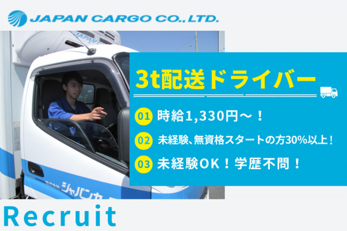 すかいらーくグループの全店を担う物流会社です。 レストラン全国3,000店舗へ毎日・定時に食材を配送してます。 3t車~4t車で「ガスト・バーミヤン・夢庵」などの店舗へ、毎日すかいらーく工場から食材等を積込み、決まった数店舗へ順番に回り届ける業務です。 また、工場間輸送等の業務もあります。 ーーーーーーーーーーーーーーーーー 【株式会社ジャパンカーゴの魅力ポイント】 ーーーーーーーーーーーーーーーーー ①高時給1,330円!安定収入でプライベートも充実 時給は1,330円と高水準!安定した収入を得ながら、無理のない働き方が可能です。生活リズムを崩さず、プライベートの時間も大切にできます。 ②すかいらーくグループの安定基盤 株式会社ジャパンカーゴは、大手すかいらーくグループの物流を担う企業です。景気に左右されにくい安定した環境で、長く腰を据えて働くことができます。 ③充実の福利厚生と働きやすさ すかいらーくグループ食事割引制度を利用可能!お得に食事が楽しめます。 ・制服貸与、交通費社内規定支給など、待遇面も充実。 ・労働時間により社会保険への加入も可能です。 ④未経験者歓迎!研修制度が充実 免許取得支援やドライバー研修が充実しています。未経験から新しい仕事に挑戦したい方を、会社全体でしっかりサポートします! 【求める人物像】 私たちは、従業員一人ひとりが「会社の顔」だと考えています。以下のような方からのご応募をお待ちしております! 運転が好きな方、安全運転を心がけられる方 ・体を動かして真面目にコツコツ働くことが好きな方 ・未経験から新しい仕事に挑戦したい方 ・安定した環境で長く働きたい方 ・ご家族や大切な人があなたの仕事を応援してくれることを目指したい方 あなたの「安心・安全・確実な運転」で、当社の物流を支えてくれませんか?ご応募をお待ちしております! 職場のリアルを覗いてみませんか? 採用情報だけでは伝わらない社員の日常や社内イベントの様子を、公式SNSで日々更新中! ぜひフォローして、当社の雰囲気を体感してください。 ★YouTube:@japancargo ★Instagram:@escommerce ★TikTok:@japancargo_saiyo |