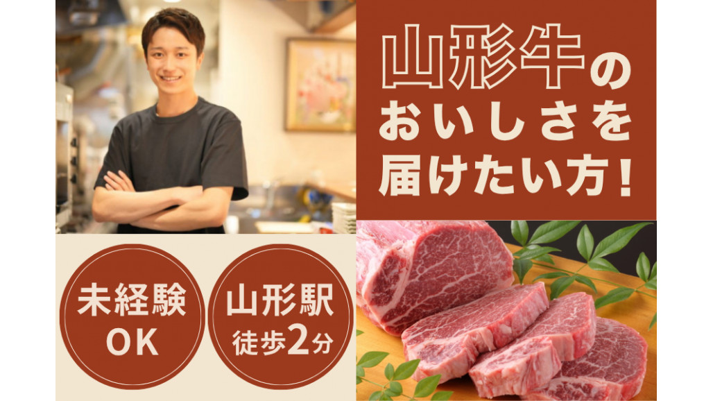 | 職種名 | 飲食 調理スタッフ・山形牛ステーキ焼肉 週休2日制 駅チカ2分 |