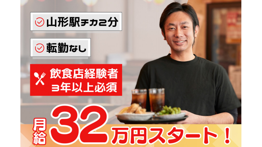 \飲食店経験を活かして店長を目指せる/ ホール・キッチンスタッフを正社員募集! 《必須》飲食店での正社員経験3年以上 《ホール・キッチンスタッフの魅力Point》 ●週休2日制:無理のない働き方でしっかり休めます ●転勤なし:地元山形で腰を据えて働けます ●資格支援制度あり:調理師免許などの取得を応援! ●食事補助あり:お店自慢のまかない付き 《ホール・キッチンスタッフの主な業務》 ・お肉の盛り付け、調理 ・料理提供、配膳、片付けなどの接客業務 ・配達業務(一部) ・売上管理・店舗運営 ・アルバイト・パートスタッフの指導・育成 など ★注文はQRコードで完結! オーダー対応の負担が少なく、落ち着いて接客や調理に専念できます 《こんな方お待ちしています》 ・飲食の仕事を続けたいが、落ち着いた環境で働きたい方 ・家族との時間や健康を大切にしながら働きたい方 ・若手の育成やチームづくりに興味がある方 ・地元で安定した職場を探している方 ★店長を目指せる環境★ これまでの経験を活かして 店舗運営やマネジメントにも関わるチャンスがあります 役職手当で給与アップも! 《株式会社かかしについて》 昭和54年創業、外食・中食事業を通じて、 地元山形の「団欒の時間」を支え続けています “お客様も、働く社員も幸せに”を理念に、 誰もが安心して働ける職場づくりを進めています 《職場環境》 同グループ店「米沢牛の案山子」と連携し、 スタッフ同士が助け合うチームワークの良さが自慢です 30代~50代のスタッフが中心で、ミドルシニア活躍中! 長く働くほど、信頼関係が深まる温かい環境です Instagram「yamagatagyukakashi」もご覧ください♪ 弊社のホール・キッチンスタッフに少しでもご興味をお持ちの方は、ぜひ一度お話ししてみませんか? ご応募お待ちしております♪ |