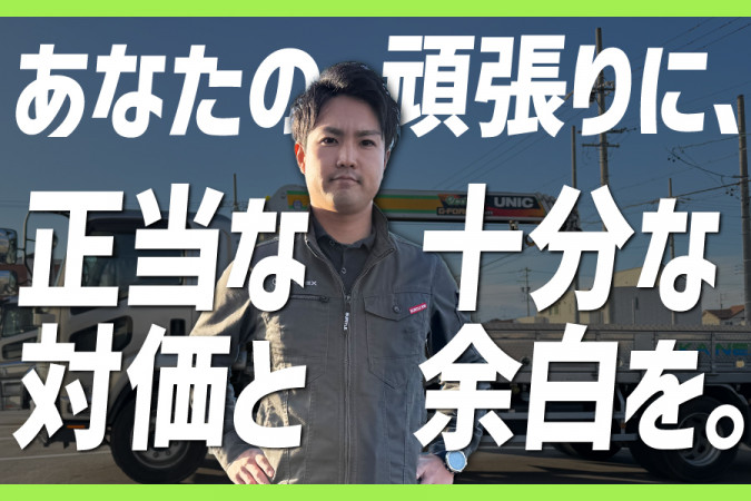 【経験を正当に評価。ムリなく、長く働ける環境です】 建設資材輸送のプロフェッショナル集団として、大手建設会社を中心に数多くの現場を支えてきた当社。 ありがたいことに依頼は年々増加。 そこで今回、12tユニック車の実務経験をお持ちの方を、即戦力ドライバーとしてお迎えしたいと考えています。 「経験を活かしながら、もっと働きやすい環境へ」 そんな想いをお持ちの方に、ぜひ知っていただきたい職場です。 ============== 当社が選ばれる理由 ============== ✅定着率94%を誇る居心地の良い職場 ✅日帰りのみ!長距離や泊りも一切なし ✅残業ほぼなし!18時には帰宅できます ✅GW・夏季・年末年始に大型連休あり など腰を据えて働ける環境を整えています。 ■具体的なお仕事内容 12tのユニック車(クレーン車)で、工事現場への建築資材の運搬・搬入などをお任せします。 積み降ろしはクレーン作業がメイン。 力仕事はほとんどなく、これまでの経験と技術を存分に活かせます。 【配送する建築資材】 ・仮説ネットやゲート ・コーン、タワークレーン部材など 建設現場に欠かせない資材を、安全第一で扱います。 【配送先】 ・駅ビル ・工場 ・商業施設 ・テーマパーク など 大規模な現場が中心。 安全管理を最優先し、落ち着いて作業できる環境です。 【エリアや走行距離】 配送件数:1日2件程度 走行距離:100km~150km エリア :愛知県を中心に東海3県 多くて2往復までなので、時間に追われることもなく、体力面・精神面ともに負担が少ない運行内容です。 もちろん全て日帰り運行。 毎日、自宅に帰れます。 ===================== 日帰りのみ!プライベートも大切に ===================== 長距離・泊まり運行は一切なし。 残業もほとんどなく、 多くのスタッフが18時前後には退社しています。 ・家族との時間 ・趣味や自分の時間 ・しっかり休む時間 すべてを大切にしながら働ける環境です。 ==================== オフも充実。しっかり休めます ==================== 休暇制度も整っており、有給も取りやすい社風です。 ■GW(10日) ■夏季休暇(9日) ■年末年始休暇(10日) 経験を活かして、次のステージへ。 大型ユニック車の経験を、 安心・安定・働きやすさのそろった環境で活かしませんか。 「もう少し話を聞いてみたい」だけでも もちろんOKです。 ぜひお気軽にご応募ください! 【求人ID-SDR】 |