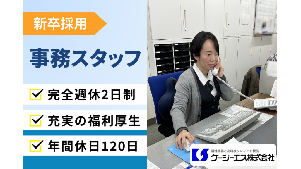 海外既存顧客からの英語メールによる受発注・納期交渉、輸出入手続き、営業アシスタント、販売促進企画、SNS広報など、幅広い業務を担当します。 ◎主な業務: 貿易事務、営業内勤、広報活動。 ◎必須スキル: 英語(海外顧客・生産拠点との交渉に使用)。 ※海外顧客は既存顧客で、主にカナダ、韓国、ドイツ、フランスの企業です。 ※貿易業務は作業レベルでは定型業務となります。 ※入社後に外部研修も含めて教育していきます。 ※変更範囲:当社業務全般(適性判断による職種変更) 【求人ポイント】 1. 英語力を活かせる!幅広いグローバル業務 ◎顧客とのやりとりは基本英語のため、得意な語学力を発揮していただけます! ◎貿易事務に加え、企画・広報にも挑戦でき、多角的なスキルが身につきます。 2. 年間休日120日と充実の待遇 ◎土日祝休み、GW・夏期・年末年始休暇あり(年間休日120日) ◎賞与年2回(最低3ヶ月分)、昇給、退職金制度あり 3. 単身者用社宅完備で生活をサポート ◎単身者用社宅完備。遠方からの応募も安心です。 ◎5年勤続ごとのリフレッシュ休暇(連続5日)あり 【ケージーエス株式会社について】 当社は、人々のQuality of Life (生活の質) の向上を目指し、ニーズに応え続ける製品と情報サービスを提供し続けることで社会に貢献します。 ソレノイド事業では幅広い分野でのモノづくりに、福祉機器事業では専門性の高い製品に深く携わることができます。 ”従業員の成長” = ”会社の成長” という想いのもと、従業員のスキルアップを支援しています。 自律的に考え、ニーズの変化に順応し、好奇心を持って、共に歩んでいただける方を求めています。 当社の製品や想いに興味を持っていただいた方は、気軽にご応募ください。 |
