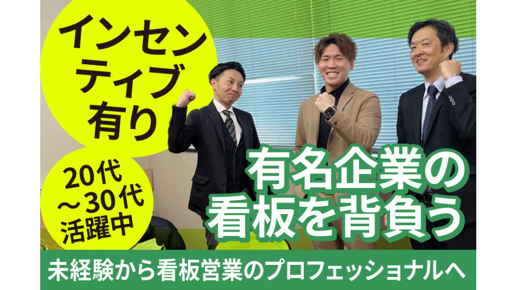 | 職種名 | 法人営業 業界トップクラスの看板製作施工会社勤務 週休2日制 10連休の長期休暇が年3回あり |
