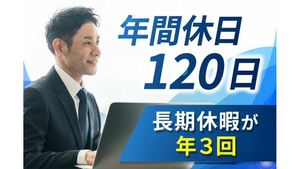 ※土曜出勤は月に1回程度。年間休日はしっかり120日以上。無理のない働き方を実現できます。