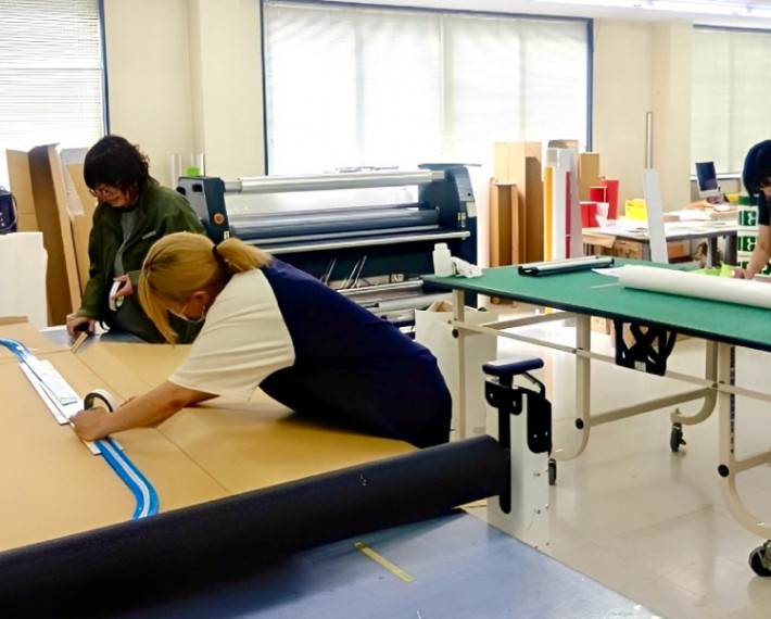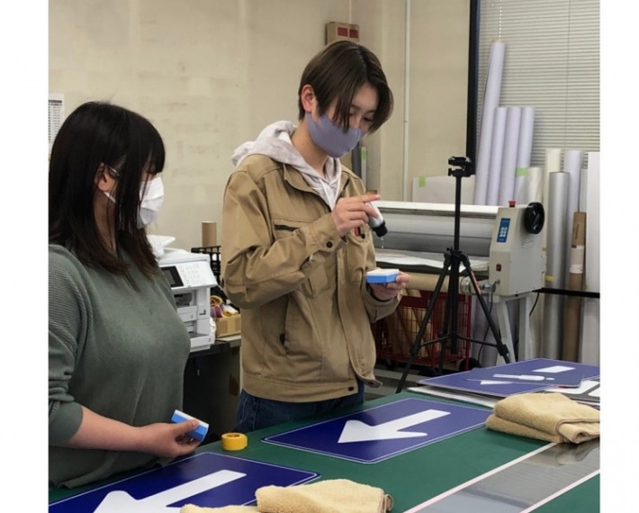 看板づくりを全部自分たちでやるからこそ、チームワークは抜群。