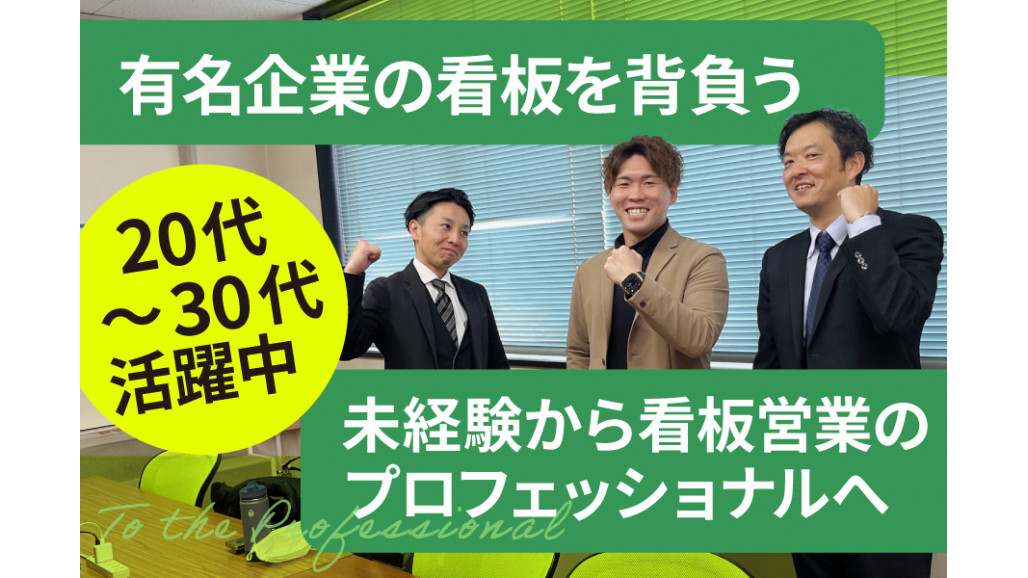 【あなたの営業キャリアに数字以上の価値を】 街の景観を動かすのは、あなたの一言から。月給35万円+インセンティブであなたの営業力を正当に評価します!新たなキャリアが今、花開く! ■必須条件 ・新規営業や法人営業のご経験 ・普通自動車運転免許(AT限定可) ・PC操作(Word、Excel、メール等) ・定年60歳のため、60歳未満の方 ■優遇条件 ・広告看板(サイン)の営業経験 ・前職にて営業成績の表彰経験 ・不動産や建築業での営業経験がある方 |