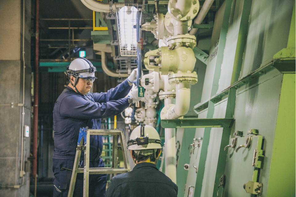 機器の運転管理、場内清掃、整備等を行っています。