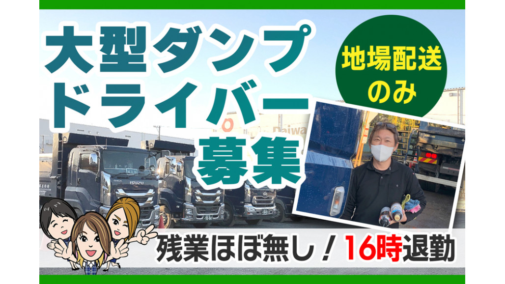 【大型ダンプドライバー経験者募集】 ■必須条件 ・大型免許 ・建設系ドライバー経験(実務3年以上) ■優遇条件 ・車両系建設機械操作できる方 □■こんな方を積極採用■□ ・長距離から地場へ切り替えたい方 ・名古屋で安定して働きたい方 ・無理なく続けられる環境を探している方 (実務経験5年以上の方) |