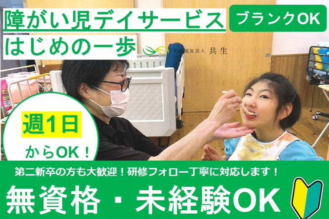 | 職種名 | 支援職員 未経験・無資格可 週1日から可 障がい児デイサービス |