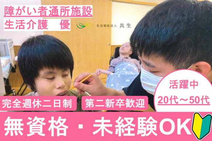 | 職種名 | 介助員 無資格可 年齢不問 障がい者デイサービス 日勤のみ |