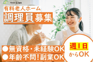 介護施設での調理のお仕事をお任せします!週1日から勤務OK!年齢・学歴不問で…