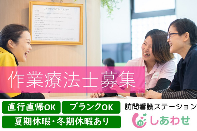 作業療法士の資格をお持ちの方、必見!訪問看護ステーションにて作業療法士を募集いたします! 訪問看護事業所やサービス付き高齢者向け住宅、有料老人ホーム併設の訪問看護ステーションにて作業療法士として働いておられた方、ぜひお力を貸してください。 特別養護老人ホームやグループホーム、小規模多機能施設、ショートステイなど入居施設にてスタッフとして勤務経験がある方にもおすすめです。 障がい者施設やデイケア(通所リハ)、デイサービス(通所介護)などで勤務されていた経験も活かせますよ! 介護や福祉、訪問介護は未経験という方もぜひご連絡ください!総合病院やクリニック、診療所などで培った経験やスキルを活かして、一人ひとりに寄り添った訪問看護ケアをしてみませんか。 20代、30代の若手、40代、50代の中高年・ミドル世代、60歳代のシニア世代まで幅広い年代のスタッフが活躍しています。 ハローワークなどで「ブランク有OK」「直行直帰OK」の作業療法士の正社員求人をお探しの方からのご連絡もお待ちしています。 |