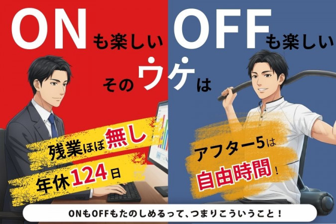 ✨年間124日✨ ■完全週休2日制 定例日:毎週 土・日曜日及び祝祭日、その他(会社が指定した日) ■有給休暇(有給平均消化日数:10日) 気兼ねなく休める環境です! 公休と繋げて旅行出かける従業員も多数! ■その他休暇 ・産前・産後休暇、育児休暇 ・慶弔休暇、特別休暇 |