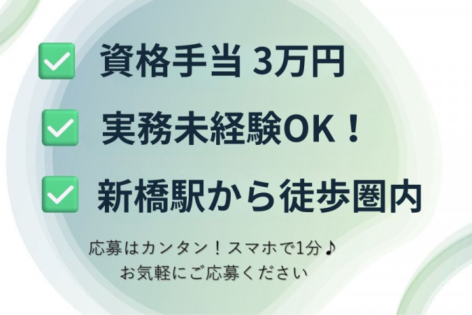 | 職種名 | ※宅建士資格保持者限定※ ワークライフバランスの整った不動産の事務 新橋駅から徒歩圏内 月27万円~ 完全週休2日制 年間116日休み |