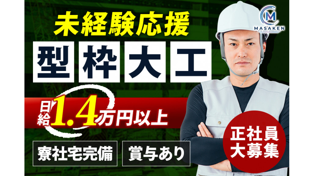 | 職種名 | 型枠工事の建設作業員 未経験応援 社員寮・家賃補助あり 週休2日も可 |