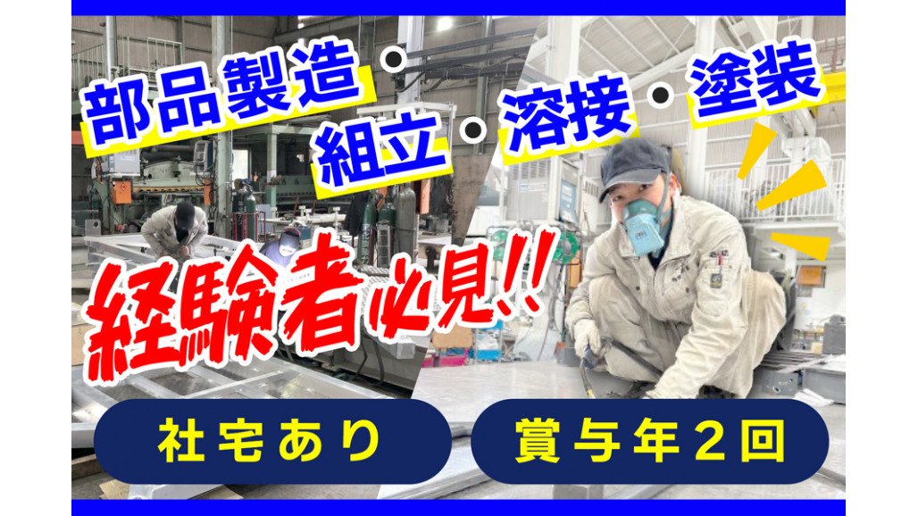 ■必須条件 ・普通自動車免許(AT限定可) ・機械やプラントの図面読める方 ・下記いずれかのご経験をお持ちの方 部品製造、組立、溶接、塗装 ■■こんな方必見■■ ・経験やスキルを活かして働きたい ・職場環境の整った企業を探している ・資格や経験を活かしてステップアップしたい |